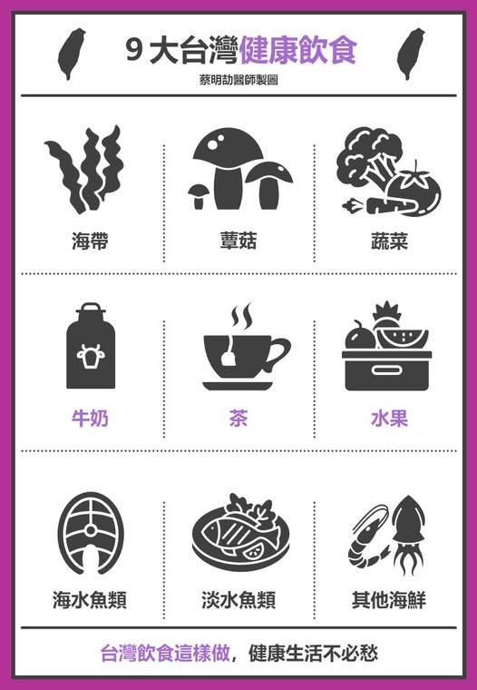 回到9種「健康的台灣食物」,其實也不是多特別,都是平常很容易吃到或喝到的食物。這篇文獻我之前提過,今天特別整理成懶人包方便大家閱讀,主要還是強調「健康不假外求」,就從每天的日常飲食開始。