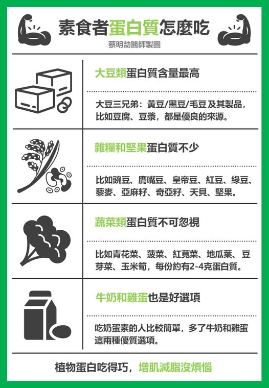 總結來說,素食者要補充蛋白質並不是個問題,甚至也有全素的健美選手,身材一樣好到沒話說。